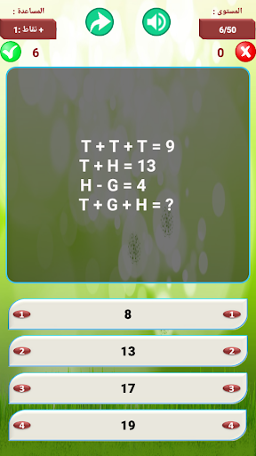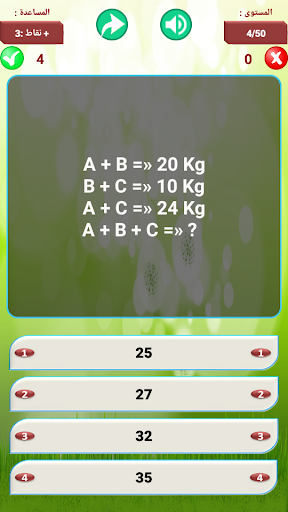 بعد الدخول إلى لعبة "ألغاز الرياضيات" يتم الضغط على زر "مسابقة جديدة" ، وستنطلق المسابقة يتم طرح اللغز مرفق بأربع أجوبة، ويتطلب اللعب التركيز ومحاولة إجاد الجواب الصحيح .