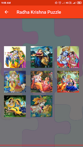 Radha Krishna Puzzle Following features: 1. Multiple picture available to choose for puzzle 2. Multiple difficulties level 3. User can save their respective score/ranking