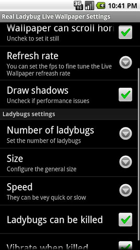 This ladybugs are alive FREE LIVE WALLPAPER gt; Some settings are restrictedPlease, if you like this wallpaper think of supporting developers work. Thx.A very fun live wallpaper where you can be evil killing the running ladybugs. Full customizable.To use:Select quot;Real Ladybug wallpaperquot; from Home Menu Wallpaper Live WallpapersFeatures: Compatible with all phone models and tablets. Hi res. Supports lanscape. You DO NOT NEED any permissions at all No advertising of any kind. Support multitouch. Vibration option. Many settings to customize. High optimized, small cpubattery consumption.Tags: beetle, ladybug, leafs, interactive wallpaper, live wallpaper, nature, mariquita, coccinella, lieveheersbeestje, coccinelle.