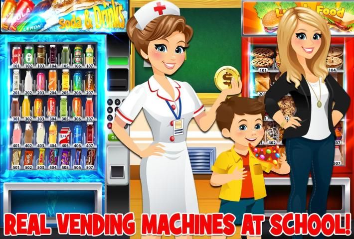 هل تحب آلات بيع في مدرستك؟ هل تحب مدرسة الغداء الغذاء، ألعاب، ألعاب صانع الحلوى وغيرها من أجهزة المحاكاة الغذاء الطبخ !؟