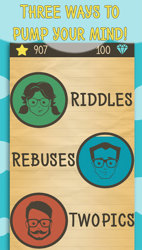 التطبيق ميزات 400 ألعاب الدماغ المنطق: 200 الألغاز، 100 الألغاز rebus و 100 اثنين من الصور.
