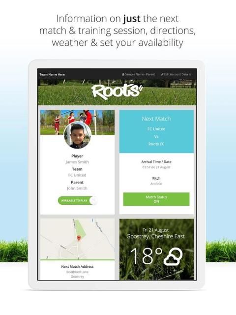 لاعبين وأولياء الأمور (من تحت 18S) يمكن ببساطة تغيير توافر والحصول على معلومات عن مجرد لعبة أو تدريب الدورة المقبلة ويكون الطقس يوم المباراة، وحسن للاعبين، حتى أفضل للآباء والأجداد دعم.