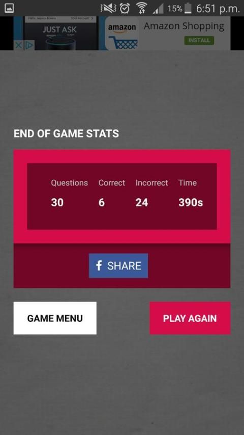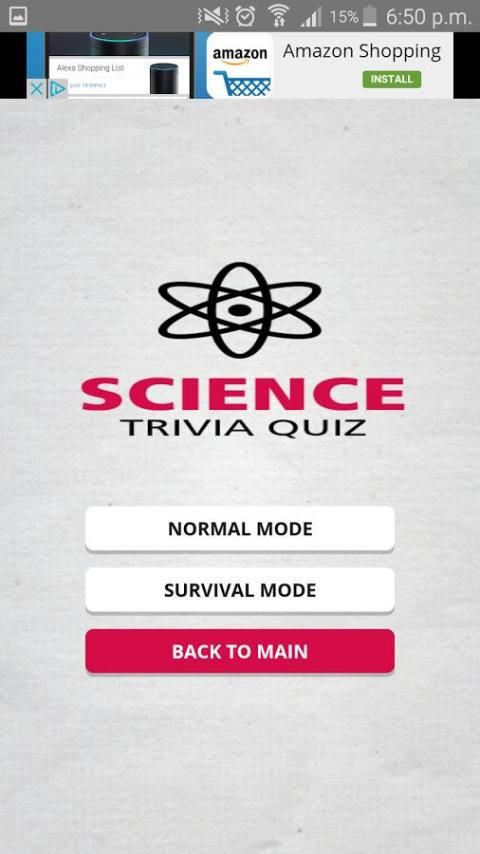 لديك 15 ثانية لكل سؤال في لعبة مسابقة العلوم، وإذا كان توقيت تنفد تفقد واحدة من 3 الخاص بك الحياة.