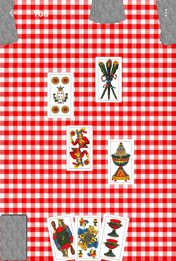 يتم لعب اللعبة عادة مع سطح بطاقات اللعب الإسبانية التقليدية، ولكن هذا الإصدار يشمل الطوابق الإقليمية الفرنسية والإيطالية.
