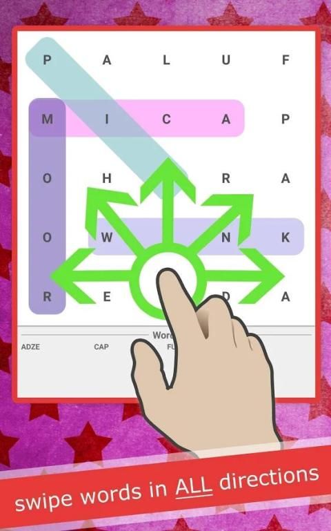 يمكن اختيار الكلمات في كل الاتجاهات تذكر حتى البحث عن الكلمات أفقيا، رأسيا وقطريا وكذلك إلى الوراء. الكلمات يمكن عرضها الخلف إلى الأمام ولكن لا يهم الطريقة التي انتقد، اذا كان هجائه بعد ذلك سوف المباراة.