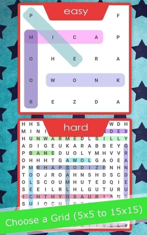 اختر صعوبة الخاص بك كلمة البحث اللغز! يمكنك تحديد مدى صعوبة أو سهولة، وتريد أن تجعل اللعبة عن طريق تحديد حجم الشبكة. هناك 11 أحجام شبكة مختلفة تبدأ من 5 × 5 ألعاب للأطفال للتحديات متطرفة من 15 × 15 للكلمة المعلمون.