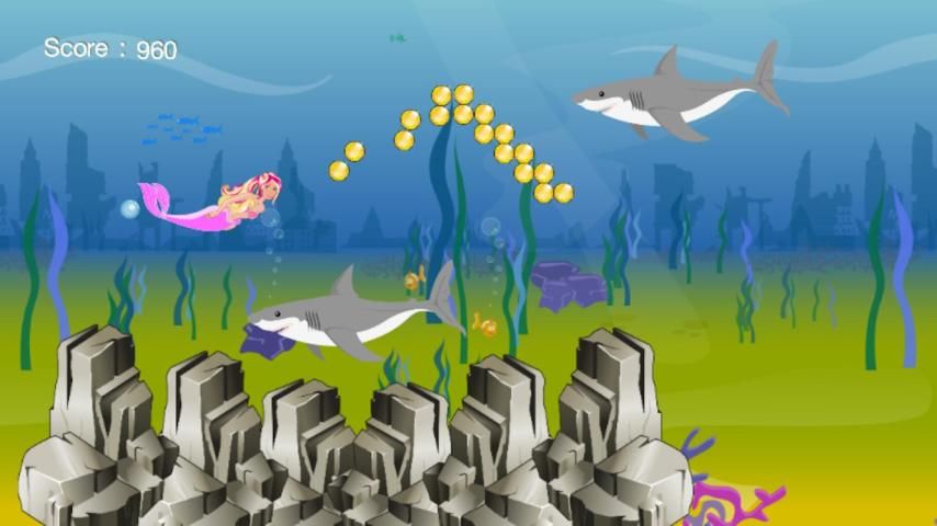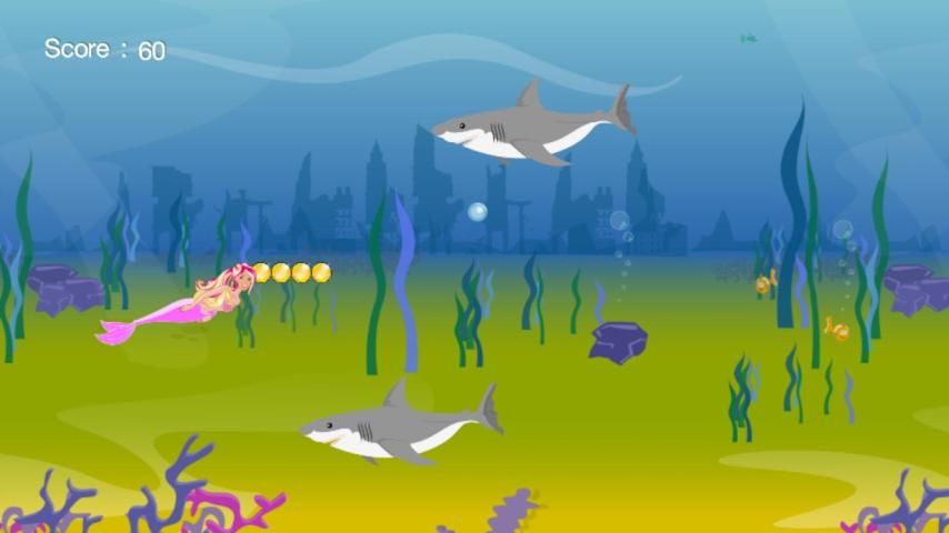 مساعدة حورية البحر جميلة عن طريق تشغيل والقفز، وتجنب العقبات على الطريق.
