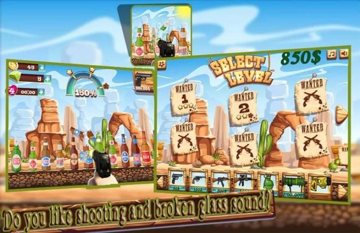هذه اللعبة تسمح لك لهدف واطلاق النار على زجاجة والزجاج المكسور.