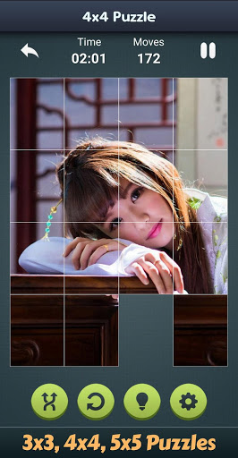 - Various sizes of girl slide tile puzzles: 3x3, 4x4, 5x5.