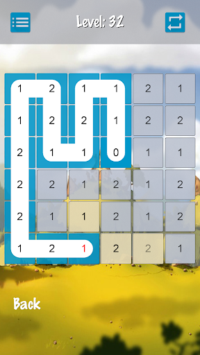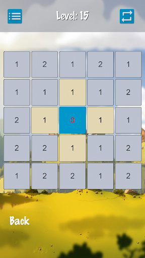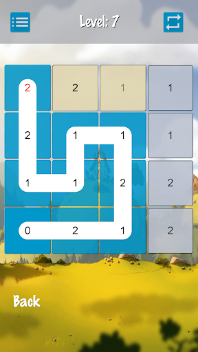 - عند لمسها على 2، تنزلق إلى الخلية التالية في نفس الاتجاه.خلفية الخلايا تتحول إلى اللون الأزرق.إذا كانت الخلية التالية غير موجودة، فإن التقدم غير ممكن.