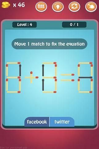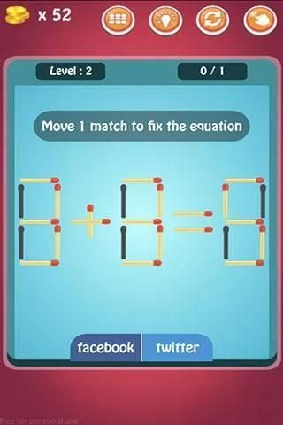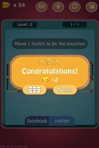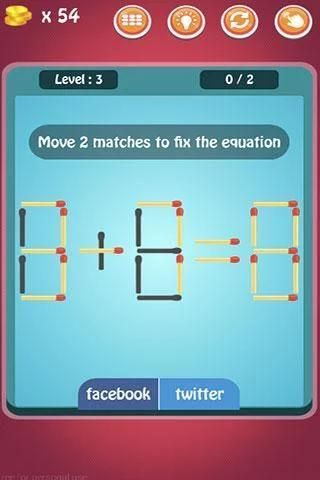 لعبة الدماغ: استمتع لنقل 1 أو 2 مباريات لإصلاح المعادلة. لعبة مفيدة للجميع وخصوصا للأطفال تحسين مهارات التفكير، مهارات الكتابة والحساب ومهارات الرياضيات. 100 مستويات أكثر