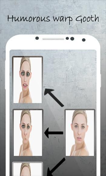 ، لدينا التطبيق صورة الاعوجاج يسهل لك أن تأخذ صورة من كاميرا الروبوت أو لالتقاط صور من معرض وثم انفتل من خلال آثار الوجه المختلفة.