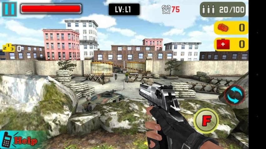 عملية بسيطة من اللعبة: حرك يسار الشاشة لتتحكم في حركة الحرف، وتنزلق على يمين الشاشة يمكنك ضبط الهدف. يمكنك استخدام عدسة التكبير بندقية قنص، وضبط عامل التضخيم من قبل الجانب الأيمن من شريط التمرير.