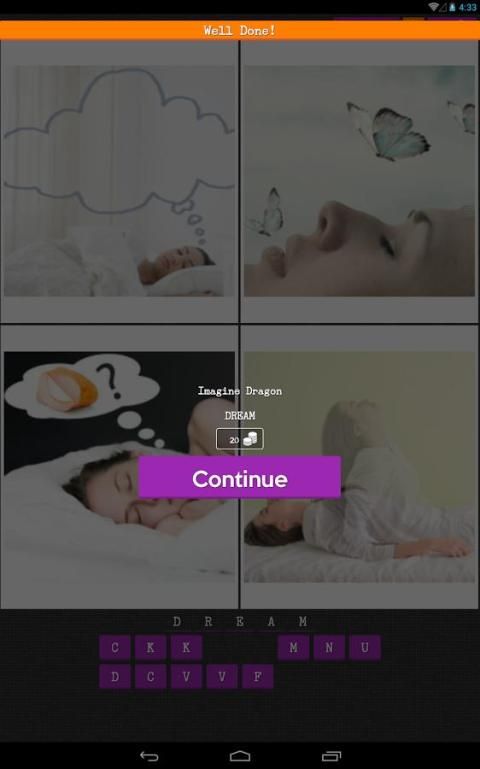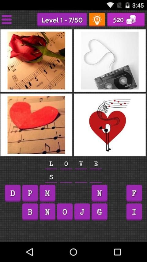 عند بدء تشغيل اللعبة، سترى أربع صور وكلمة فارغة. اضغط على الأزرار حرف لملء الفراغات.