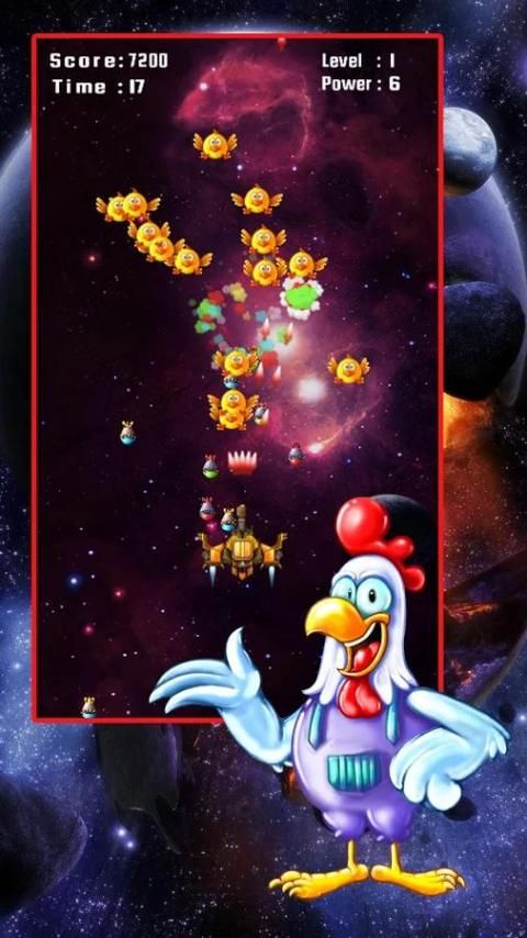 إنقاذ الأرض من غزو الدجاج! تقدم من خلال موجات غزو الدجاج، وتجنب الوقوع الصواريخ وجمع شكا من السلطة لتعزيز قوة نيران سفينة الفضاء الخاص بك.