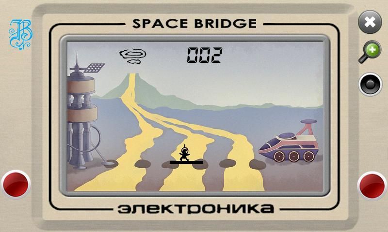 وستقام المباراة على بعض الكوكب حيث تم قطع اندلاع رواد الفضاء قاعدة البركان الخروج من تدفقات الحمم البركانية الناقل الثلاثة. هناك الجسر الذي يمكن نقل من خلال واحدة فقط من تدفق الحمم ثلاثة. من بناء قاعدة القفز بالتناوب رواد الفضاء للوصول الى نقل لهذا ينبغي التغلب على جميع تيارات 3 من الحمم البركانية. الهدف - لاستخدام "اليسار و" اليمين "لإعادة ترتيب الجسر تحت كل رائد فضاء، والتغلب على تدفق الحمم البركانية وإلا، إذا فشل رواد الفضاء، لاعب سوف يحصل على نقطة الجزاء عند استلام هذه النقاط عقوبة ثلاث نهايات اللعبة. وعند الوصول إلى 120 و 250 و 500 نقطة جزاء يتم إلغاء. عند الوصول إلى 999 نقطة وغني عن اللعبة بنتيجة 0.