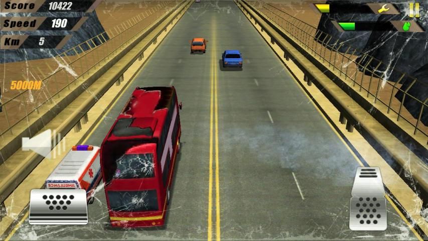 Ever imagined 3D speed bus race through highway is now set to go! Drive your bus through highway traffic, earn cash and upgrade various new buses. Be careful with the traffic and don’t crash with other vehicles, but you can go closer to each vehicle and make close calls and earn more points and cash. Be in the top speed and unlock all the achievements listed which will be rewarded automatically. Note that since it is high speed real race and hence you must pick up Petrol/Gas/Diesel on your way to maintain your tank filled, and you can also repair your bus by picking up Repair Tool Box.