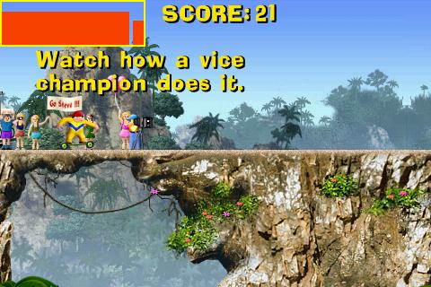 Touch the screen to jump the gaps and obstacles.Welcome, investors. Mr Stephen Tumble, triple silver medalist, will put our new product through its paces on this live course. Go SteveRide the skateboard over highland plateaus, touch the screen to jump over the gaps and other obstacles.