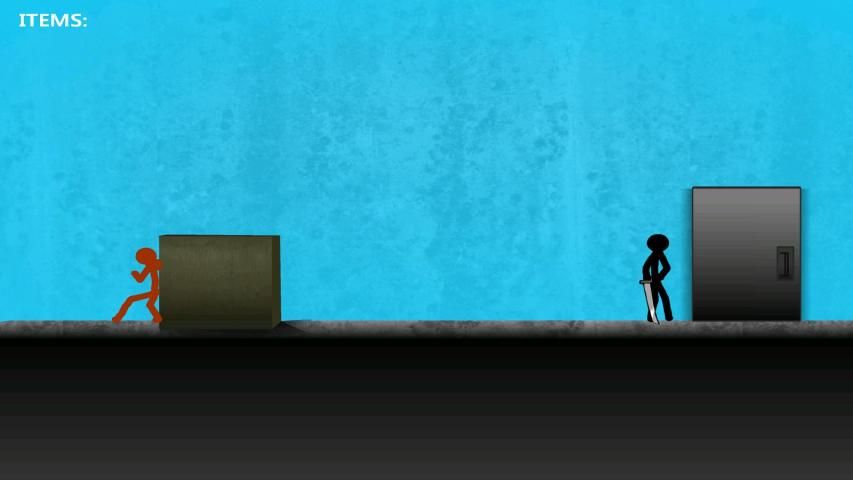 * أولا: Stickman بالضغط على المربع الموجود أمام مربع في إغراء العدو قتلوه بعد إغلاق، ثم ضرب مربع لكسر مربع، والتقطت على الارض بعد الخروج من السكين، يمكنك انقر على الحق في إزالة الباب.