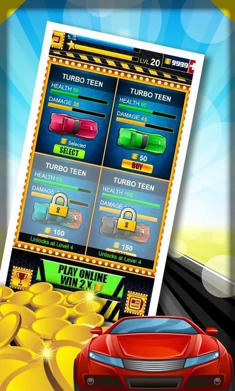 Street Racing Slots is one of the best racing games. Have fun dodging cars and destroying your rival cars while you speed up to the limit. Race against the Super Cars in an outstanding Racing Face-Off and try to win the Prestige race. Equip your car with pliers, wrench and sling shot. Make your own customized armored car to fire on the way!