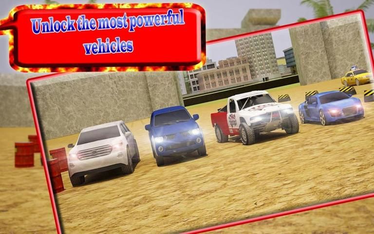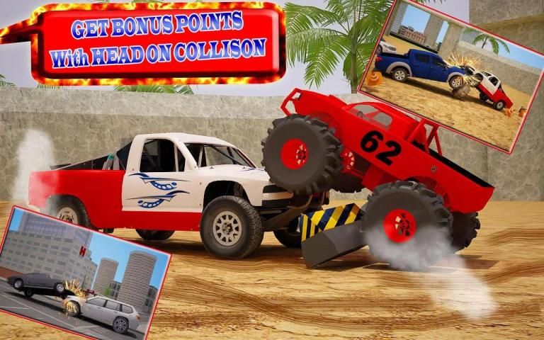 10 مستويات لتحدي مهارات القيادة الخاصة بك في مباراة دربي أخطر أي وقت مضى خلق! دفع معظم ملحمة سباق السيارات والشاحنات والشاحنات الوحش في الملعب هدم ملحمة في هذا محاكاة مدينة الوحش.