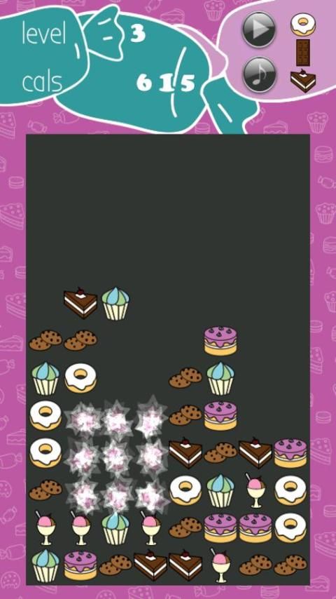 إعادة ترتيب يعامل مسكر إلى خطوط من ثلاثة أو أكثر من البنود متطابقه لمسح تلك السعرات الحرارية. ويعامل مكافأة المتاحة طوال المباراة، مما يتيح لك المزيد من الفرص لزيادة درجة الحرارية الخاصة بك.