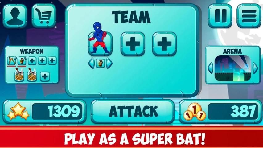 اختيار جانبكم، كما تلعب سوبر بات أو بطل الرجل.