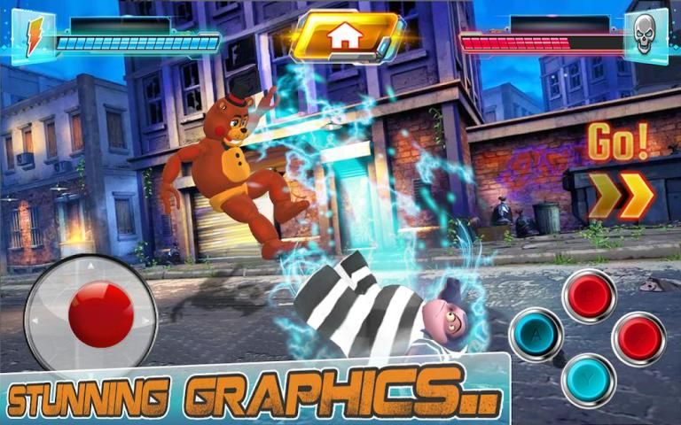 Show fighting skills of Super Fnaf Street Battle 3D and tell them this is not an ordinary hero fighting, it's a furious battle of fighting mission. Join superhero league as five night freddy at to learn the tactics of Super Fnaf Street Battle 3D side by side with heroes to serve your nation because your are the only hope of your beautiful city. So without wasting your time, start this super-exciting battle in survival and fight as fearless fighter with brave heart.