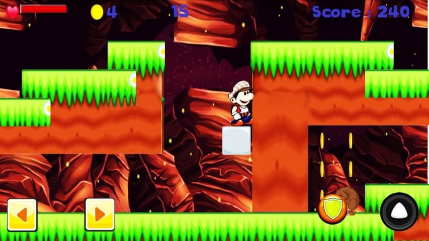 تشغيل والقفز عبر الغابة! تشغيل لجمع القطع النقدية وغيرها من البنود مثل الفخاخ، وقتل الأعداء التي كتبها steping على رؤوسهم أو الاعتداء عليهم من قبل سلاح.