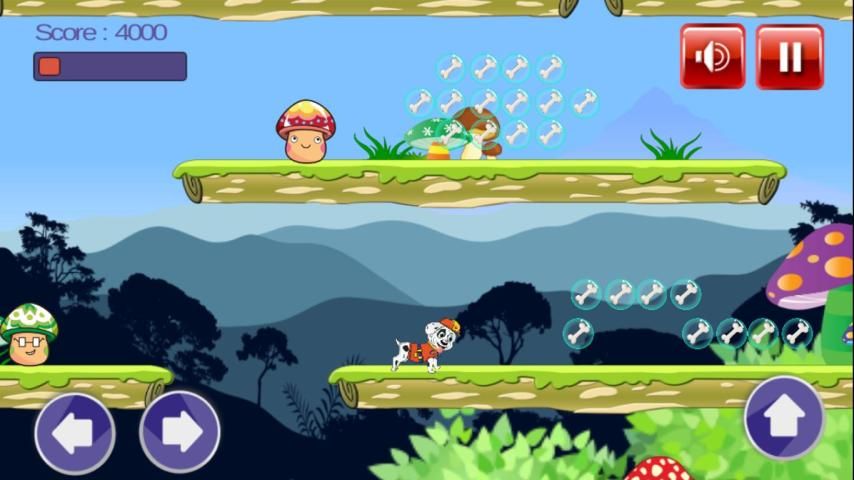 # Simple and easy to play. Place your thumbs on the either side of the screen and get started. Use the arrow keys on your left to move your puppy sideways. Tap the arrow key on the right side to jump over the obstacles. To jump twice touch this arrow key quickly for a Double Jump. Collect the bones to achieve a great score.