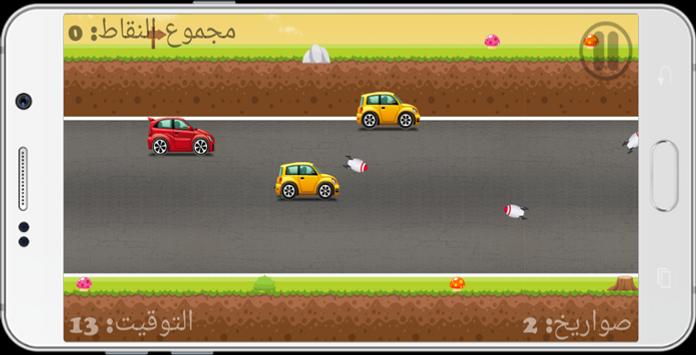 ***** عليك تجنب الاصطدام ب السيارات الاخرى او يمكنك تدميرها عبر الضغط على زر الصاروخ في اسفل اليمين