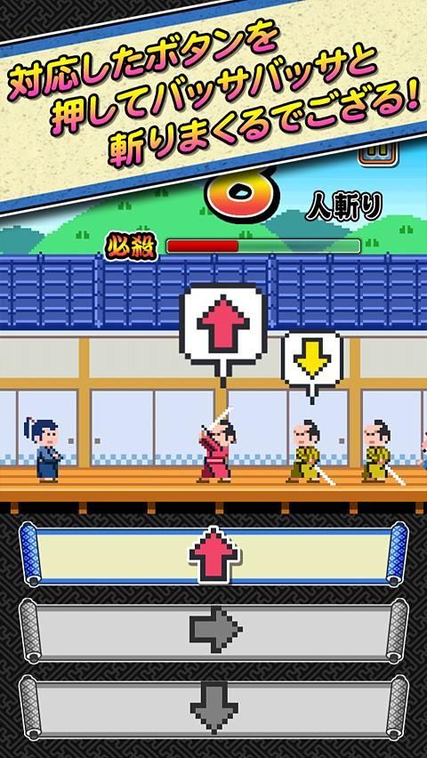 敵の構えに対応したボタンを押すことで斬撃を繰り出し悪侍をぶっとばすでござる!