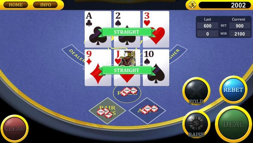 يتضمن ثلاثة بطاقة بوكر وضعين من اللعب. تلعب الرهانات أنتي واللعب في المنافسة على يد لاعب ضد جهة تاجر. يتم دفع الرهان زوج زائد على أساس جدول الأجور أن يد لاعب سوف يكون زوج أو أفضل منه. في معظم الكازينوهات على حد سواء انتي وزوج زائد هي اختيارية، ولكن هناك بعض الكازينوهات فيها أنتي غير إلزامية. بعد وضعت كل الرهانات انتي وزوج بالاضافة الى ذلك، يتم التعامل مع ثلاث بطاقات لكل لاعب وتاجر. اللاعبين الذين وضعوا الرهان أنتي لديهم خيار إما أضعاف أو الاستمرار في اللعبة من خلال وضع رهان اللعب على قدم المساواة إلى أنتي. ثم تتعرض اليدين والرهانات حل. يجب أن يكون من جهة تاجر الملكة عالية أو أفضل لجهة تاجر للعب.