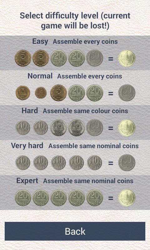 على مستويات سهلة يمكنك توصيل كل نوع من القطع النقدية. على مستويات أعلى فقط نفس اللون / القطع النقدية الاسمية نفسها الانضمام.