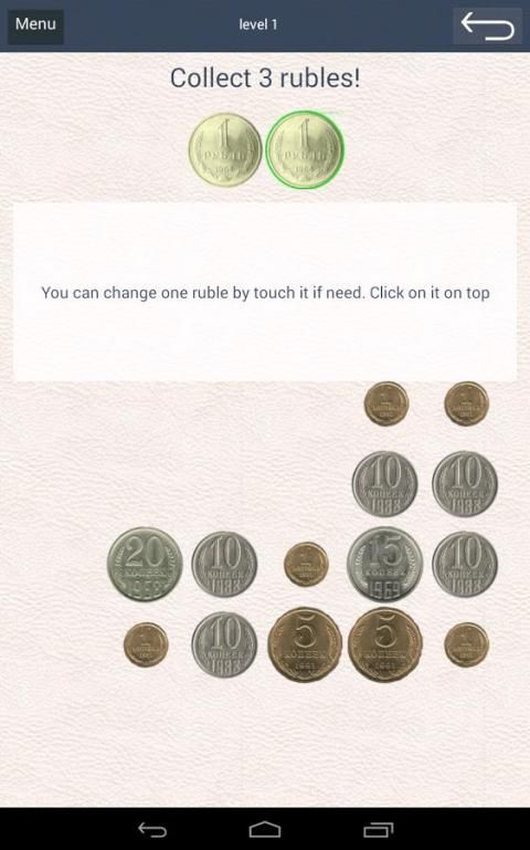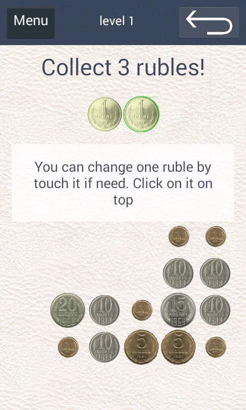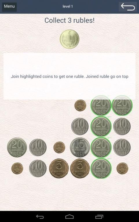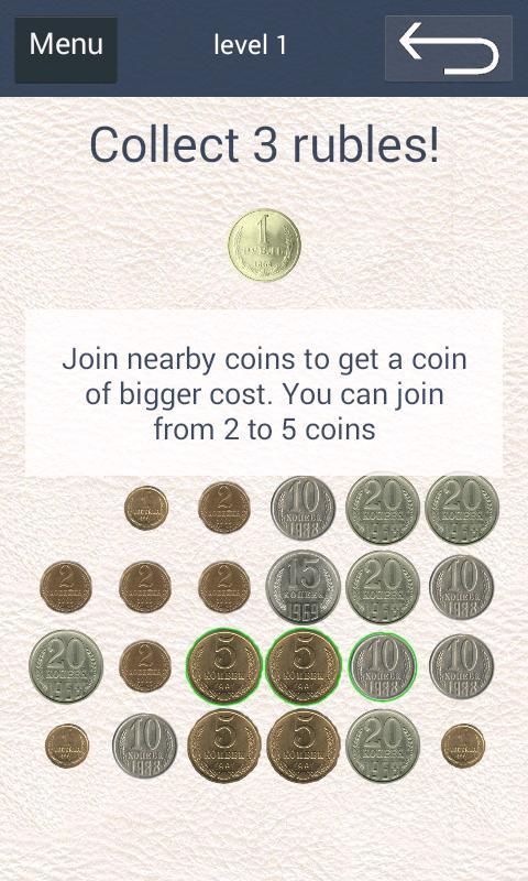 الهدف هو جمع ثلاث عملات الروبل من خلال ربط النقود والحصول على عملة من أكبر الاسمي.