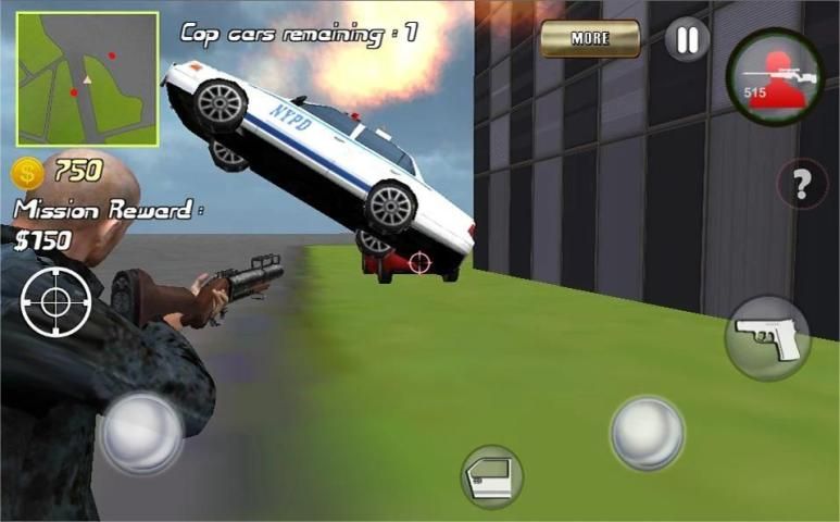 Become the biggest gangster of San Andreas California and rule the streets of this big city. At the neighborhoods of this ghetto there are big wars going on between rival gangs. Your job is to take over the streets by shooting on cops, apache helicopters, tanks and many more competitors that are trying to take over this realistic city. Join the action simulator now and bomb those enemy's while earning money for upgrades of your guns and snipers. Become the druglord and biggest mafia boss of south central San Andreas! Enjoy this mobster game and we hope you like the realistic 3D graphics and physics of this FREE action game with a lot of shooting. You can even steel cars and drive around town to take down other gangsters on the streets. We wish you all the luck and we hope you get out safe!