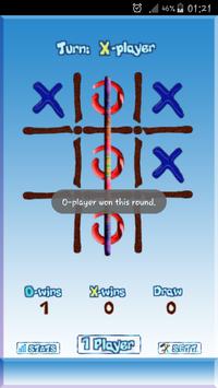 اللاعبين لديهم ليتناوبون بمناسبة المساحات على الشبكة. اللاعب الذي ينجح في وضع ثلاث علامات منها في خط أفقي، عمودي، أو قطري يفوز في الجولة، اذا لم يكن الجسم يمكن أن تضع ثلاث علامات منها يتم وضع علامة الجولة كما بالتعادل.