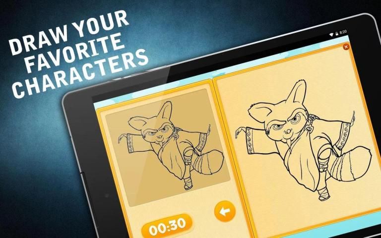 وبالإضافة إلى ذلك، سوف المعلمين الفن الخاص بك سيكون المفضل لديك "باندا" حرفا، كما بو، دجلة وشي فو. الآن لا يمكنك فقط مشاهدة الرسوم المفضلة لديك، ولكن أيضا تعلم كيفية رسم شخصياتهم! القطار في مروحة الرسم الكونغ فو باندا: أسرار الحروف التمرير ووضع السجلات الخاصة بك في الرسم عالية السرعة. كل هذا وأكثر من ذلك بكثير رهيبة الأنشطة في انتظاركم في «تايم رسم الكونغ فو باندا» التطبيق!
