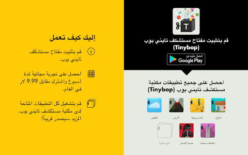 قم بتثبيت وتشغيل كل التطبيقات المتاحة لدى مكتبة مستكشف تايني بوب (Tinybop).