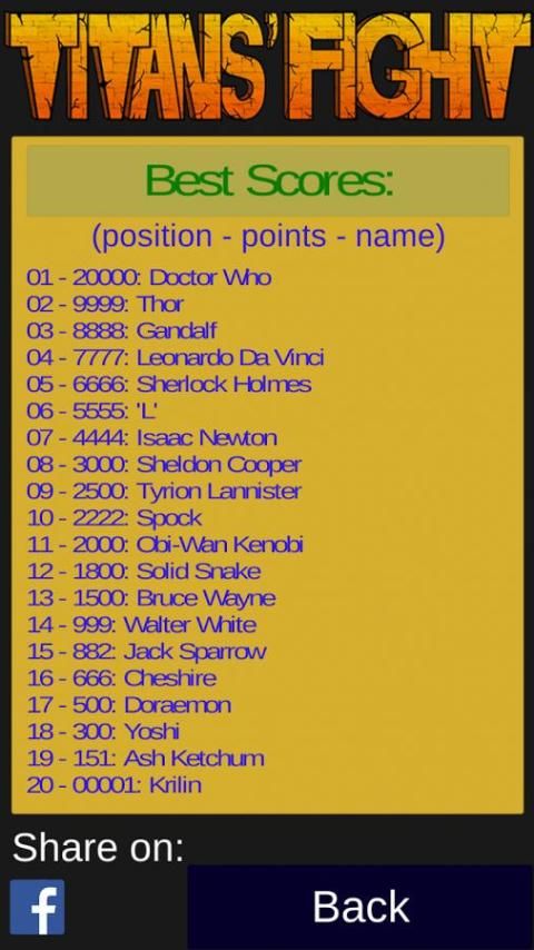Titans' Fight is a game where player's knowledge is challenged in very varied topics as: