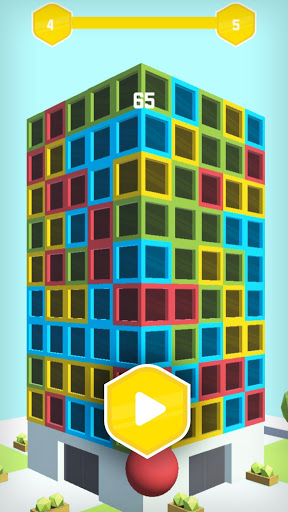 - Use the Balls to hit a Stack of windows with the same color to Crash them ,and destroy all skyscraper.