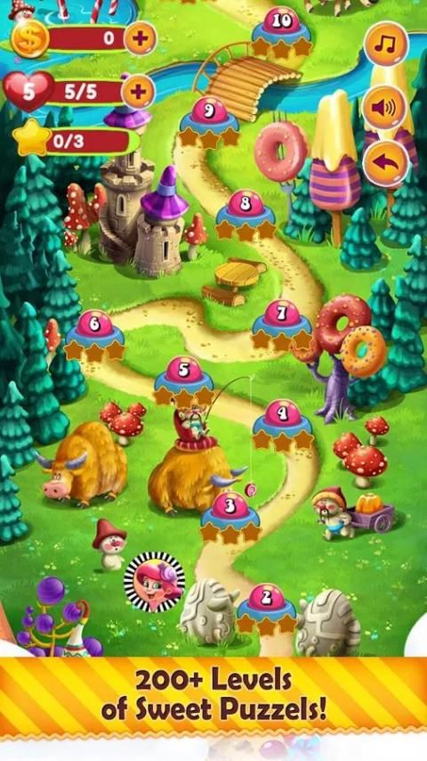 - وجود 200 مختلفة ومستويات التحدي الحلوى.