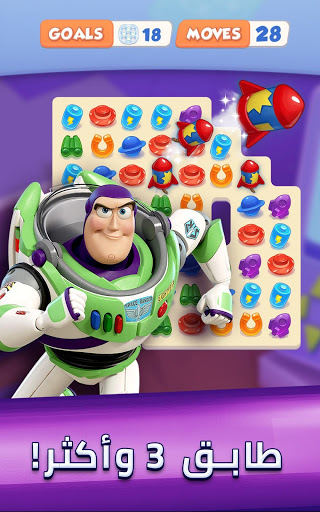 حكاية لعبة من عالم ديزني وبيكسار تأتي إلى الحياة في اللعبة المحمولة الوحيدة التي تم تصميمها بالكامل في عالم حكاية لعبة, بما فيها حكاية لعبة 4! ساعد وودي, باز و الشخصيات المحبوبة ، القديمة والجديدة. إفتح قصصهم في مشهد واحد كل مرة بينما تذهب في مغامرتك عبر المواقع المميزة مثل غرفة أندي ، بيتزا بلانيت وأكثر من ذلك.تغلب على عقبات ضخمة وأنت تطابق, تسقط وتتجاوز المئات من الألغاز المثيرة لمطابقة 3. أدخل عوالم واسع الخيال بواسطة جمع وتجميع مجموعة لعب خاصة بشخصيات معينة, و ذلك لفتح مشهد جديد للمغامرات كمكافأة لك.مع سحر قصة لعبة في متناول يديك, فإن لديك صديق في مطابقة 3!