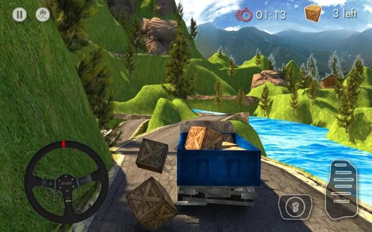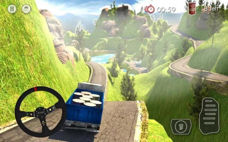 سائق شاحنة بضائع : خارج المسار هو يسير بخطى سريعة، لعبة التحدي للعب. توجيه شاحنة الخاص بك إلى اليسار أو اليمين باستخدام عجلة القيادة على اليسار. لمس أو الضغط على زر الغاز (يمين) لتسريع وزر الفرامل (يسار) لإبطاء. سائق شاحنة بضائع : خارج المسار غير مثيرة البضائع شاحنة يقود المباراة التي سوف تحصل الأدرينالين ضخ!