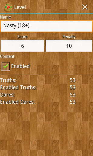 Adult version of Truth or Dare game. This is an extension of Truth or Dare Game Teens application. It contains around 1000 tasks, more than 500 predefined tasks with no sexual content and more than 400 tasks with adult content. It is fully customizable, you can add, modify, delete, organize the questions as you like. Main features: 2 play modes: spin the bottle, clockwise sequential order; 3 level advance mode: progressive, manual or random; random select coworkers or spin the bottle; players profile photos; players score view; questions organized in levels; fully customizable levels: add edit delete enable disable order; fully customizable questions: add edit delete enable disable; customizable playing mode;Have fun