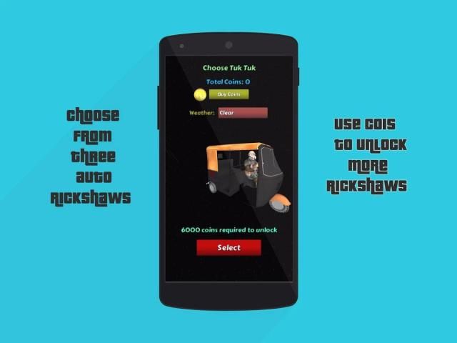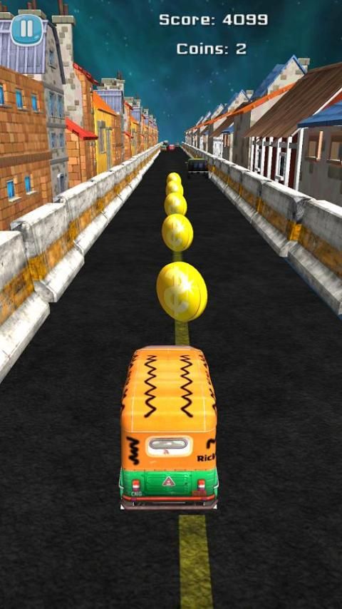 Take your Tuk Tuk Rickshaw, avoid the cars, get the coins and win.