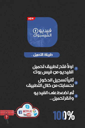 تطبيق تنزيل الفيديو من فيسبوك يمكنه مساعدتك فى تنزيل جميع ملفات الفيديو من فيسبوك بخطوات سهلة للغاية. أنه سريع جدا ومجاناً 100%.