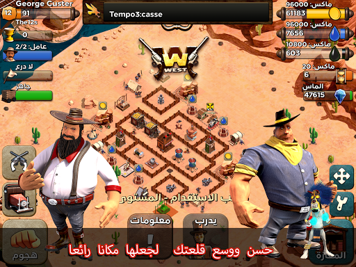 بناء معسكر محصن وتطويره من خلال تحسين دفاعاتها ، من خلال تجنيد قوات هجومية أقوى من أي وقت مضى ، والقيام بهجمات مدمرة واقتحام معسكرات أخرى اللاعبين ، نهب مواردها لتصبح رقم 1 في العالم War Wild West