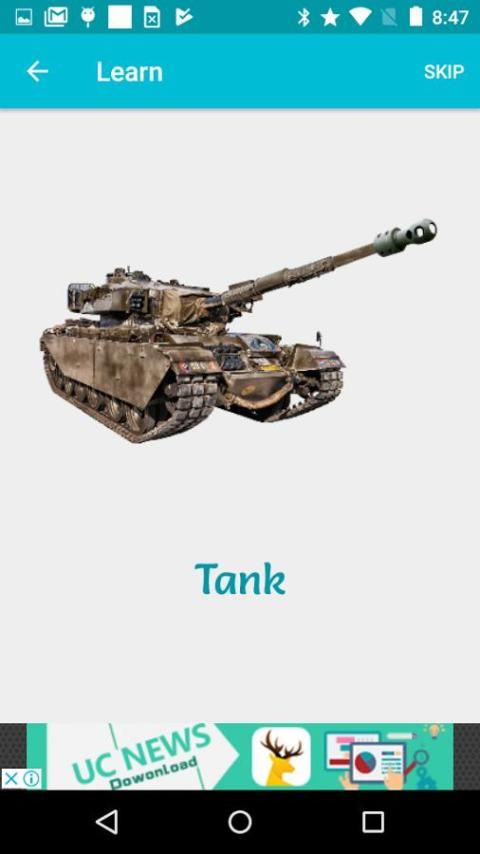 1.Learn -> تعلم أسلحة من خلال رؤية والصور، والاستماع أسمائهم مع النطق.