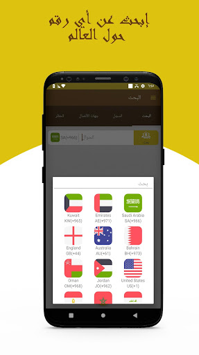 * البحث - تستطيع البحث لجميع ارقام الهاتف وجميع الدول